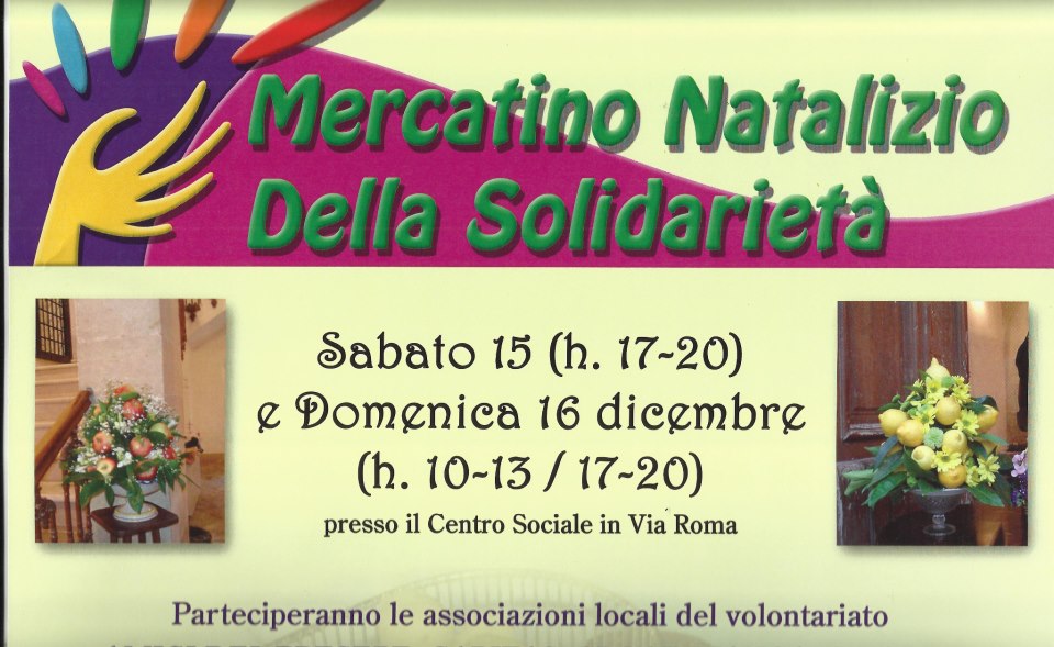 Sabato 15, dalle 17 alle 2o e domenica 16, dalle 10 alle 13 e dalle 17 alle 20, presso il centro sociale di via Roma a San Donato di Lecce, si terrà il Mercatino Natalizio della Solidarietà, una lodevole iniziativa dal forte carattere sociale. Numerose le associazioni coinvolte nella realizzazione dell’evento, patrocinato dal Comune di San Donato: Amici del Presepe, Lilt, Gesù Confido in Te, Unitalsi, Imparagiocando, Gecos, Pro Loco di San Donato e Galugnano, Caritas e Croce Bianca.