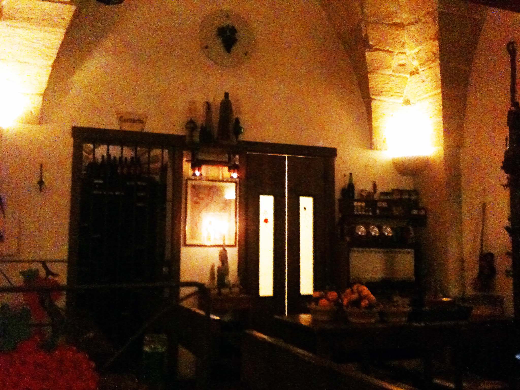 Avete mai provato a cercare un ristorante chic sulle Pagine Gialle, nelle vicinanze di Otranto? Tra i risultati, alcuni dei quali fanno capo ai più noti locali della zona, ce n’è uno dall’aria misteriosa, il “Dioniso”, misterioso per coloro che vi si accostano per la prima volta. Il mistero non si dissolve affatto all’arrivo a Minervino, dove sarà difficile che gli indigeni vi indichino esattamente dove il locale si trovi: nella mentalità comune il “Dioniso” è visto come un luogo in cui si beve, come una vecchia osteria, non certo un ristorante chic come promettevano le Pagine Gialle. Ma della vecchia osteria il “Dioniso”, o Puteca de mieru, come recita l’insegna fuori dalla porta, ha ben poco, se non la filosofia del pasto sano e in gran parte a chilometri zero, basato su ingredienti genuini, il tutto bagnato con litri e litri di buon vino, anche questo in gran parte rigorosamente salentino, senza disdegnare però anche le qualità di vini tipici di altre zone d’Italia. Nel menù, che cambia secondo le disponibilità, troviamo, tra gli altri, piatti come la massa e ceci con pepe e cannella, le sagne ‘ncannulate e una serie di carni alla pignata, che sprigionano sapori antichi direttamente nella nostra bocca. Gli avventori vengono da tutta la provincia e sembrano apprezzare l’atmosfera dei mandarini e delle noci sui tavoli, delle tavolate che spesso si uniscono in un convivio solo, il silenzio così raro da trovare in un qualunque locale in cui gli iati della conversazione sono compensati dalla musica, eppure, per chi non sa stare senza, c’è chitarra e tamburelli a disposizione nella sala principale, e appeso alle pareti persino il testo della notissima canzone popolare salentina “Mieru”. Così, se pure qualcuno può restare deluso dal non trovarsi davanti il locale chic che si aspettava, tutti gli altri riusciranno ad apprezzare il calore, quello di una cena con sconosciuti che prende tutta l’aria di una cena casalinga tra amici intimi, così come il calore del signor Tonino, il proprietario, che non disdegna di raccontare minuziosamente il modo in cui sceglie i suoi cibi, facendo compagnia agli avventori, in modo sempre discreto ma piacevole.