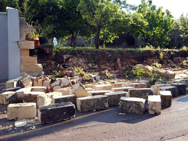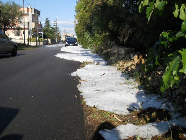 Una eccezionale quanto distruttiva grandinata si è abbattuta su Borgagne stanotte, poco dopo l’una, con violenza massima del fenomeno meteorologico raggiunta intorno alle tre di mattina. Una notte d’inferno, per i cittadini di Borgagne, impegnati a liberare le proprie abitazioni dall’acqua e dal ghiaccio. Stamattina, sul paese, splende il sole ma i danni sono incalcolabili. Case e cantine allagate, muri abbattuti, giardini e campi distrutti, animali da cortile annegati, strade ricoperte di ghiaccio. Particolarmente colpita è stata la zona bassa del paese, mentre si è salvata la parte alta. I vigili del fuoco sono impegnati da diverse ore a svuotare dall’acqua le case e la cantine, con l’aiuto di pompe idrovore. Il vicesindaco Mauro Russo e il dirigente dell’Ufficio tecnico Luigi Saracino stanno procedendo al conteggio dei danni. Non è la prima volta che una simile calamità si abbatte su Borgagne ma, di anno in anno, il fenomeno si manifesta in modo sempre più violento. L’uomo è inerme dinanzi alla Natura, che si scatena forse per ricordare a tutti che siamo solo ospiti casuali del pianeta.