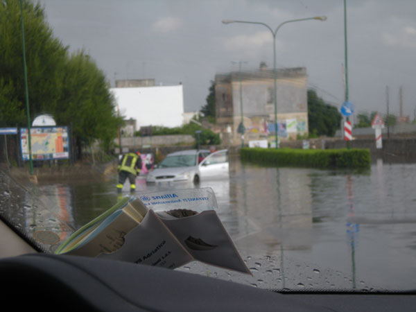 In via Vittorio Veneto l’acqua è salita di almeno cinquanta centimetri e miglior sorte non è toccata alla strade limitrofe.
