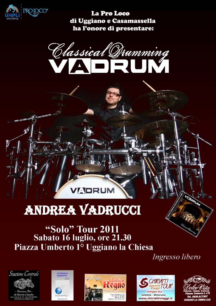 Il batterista salentino dei record, Andrea “Vadrum” Vadrucci, si esibirà dal vivo a Uggiano la Chiesa sabato 16 luglio 2011 alle 21,30 presso piazza Umberto I, con un concerto a ingresso gratuito. Il concerto di Vadrucci rientra nella serie di eventi dell’estate uggianese, organizzata dalla Pro Loco. Il talentuoso salentino, fenomeno planetario della Rete, presenterà il suo ultimo capolavoro, “Classical Drumming”. Il suo canale video su YouTube ha superato i 60 milioni di visite, e ha il primato per numero d’iscrizioni tra i canali musicali italiani. Miracoli della generazione dei bit, le sue performance fanno il giro del mondo in un click e probabilmente senza le autostrade elettroniche il suo arrangiamento del “Barbiere di Siviglia” di Rossini non sarebbe mai stato trasmesso su “Programa do Jô”, uno dei più seguiti programmi della televisione brasiliana di Tv Globo. Un po’ di fortuna, ma sostenuta certo dal talento straordinario di Vadrum, ormai in giro per il mondo a suonare e raccogliere premi prestigiosi, come la vittoria al concorso nazionale per batteristi “Drummer of Tomorrow” e la finale europea di Francoforte nel marzo 2008. In seguito è passato anche per Los Angeles, per il Musicians Institute di Hollywood, ottenendo il Certificate in Performance. Esibitosi anche sul palco del “La Rioja Drumming Festival” (Spagna) e nell’edizione invernale di “DreamHack” (Svezia), a settembre 2010 è stato al “Drumworld Festival” olandese insieme a Steve Gadd, Mel Gaynor, Todd Sucherman e Mike Terrana, veri mostri sacri delle bacchette. “Classical Drumming” è la realizzazione dei sogni di Vadrucci, ovvero suonare con una vera orchestra sinfonica di 36 elementi, in gran parte della fondazione “Tito Schipa”. Venti i brani contenuti nell’album, tra cui lo stesso Barbiere di Siviglia, il Guglielmo Tell, la Primavera e l’Estate di Vivaldi, la Marcia di Radetzky, il Volo del calabrone, la Quinta sinfonia di Bethoveen e il Nabucco. Una contaminazione che stupisce per gli splendidi arrangiamenti e l’energia travolgente di Vadrum, che ha già ottenuto consensi testimoniati dai primi posti in classifica sul portale Amazon mp3 negli Stati Uniti, in Giappone e Francia, e altrettanti posizionamenti alti in altri Paesi e sui digital stores come iTunes. Un appuntamento da non perdere, quello di Vadrum a Uggiano, per sostenere il talento del batterista, impreziosito dalla presenza di un’altra musicista, la violinista uggianese Carla De Fabrizio, che duetterà con Andrea.