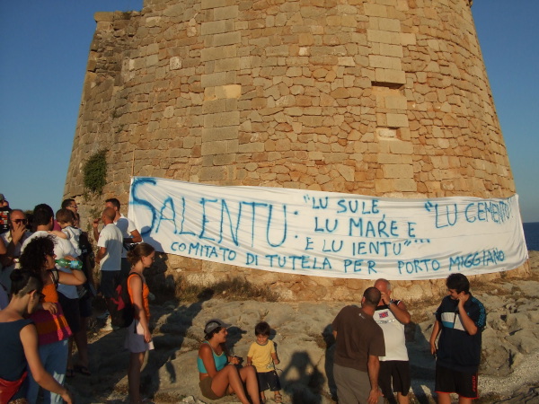 Salentini in tumulto contro la cementificazione di Porto Miggiano. Si è tenuto ieri pomeriggio alle 18,30 il sit in di protesta contro le nuove costruzioni che sono previste in un progetto a Porto Miggiano, marina che fa parte del comune Santa Cesarea Terme. Il progetto prevede la realizzazione di cinquecento appartamenti oltre la litoranea Santa Cesarea–Castro e a ridosso della Torre Saracena i servizi annessi.