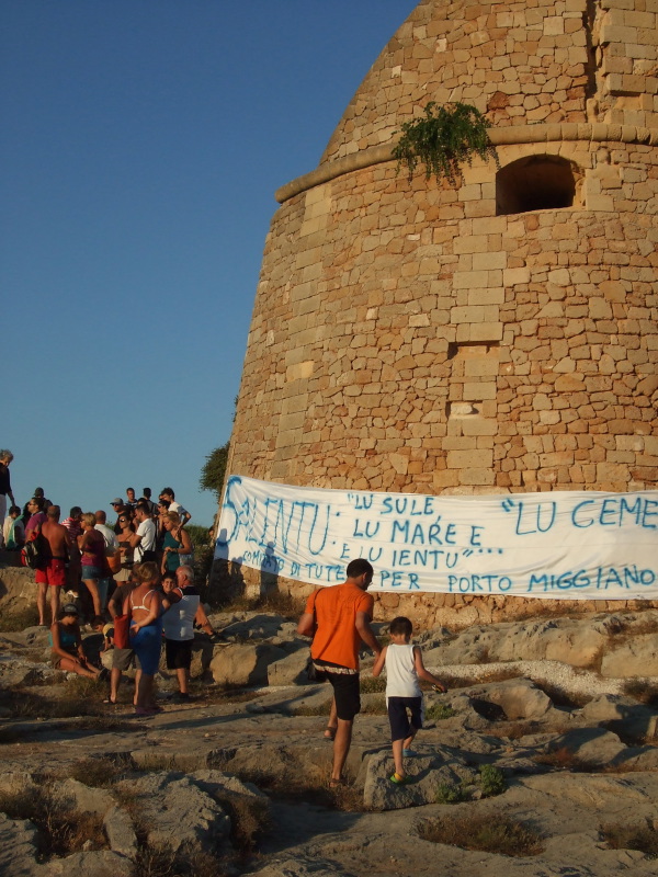 Salentini in tumulto contro la cementificazione di Porto Miggiano. Si è tenuto ieri pomeriggio alle 18,30 il sit in di protesta contro le nuove costruzioni che sono previste in un progetto a Porto Miggiano, marina che fa parte del comune Santa Cesarea Terme. Il progetto prevede la realizzazione di cinquecento appartamenti oltre la litoranea Santa Cesarea–Castro e a ridosso della Torre Saracena i servizi annessi.