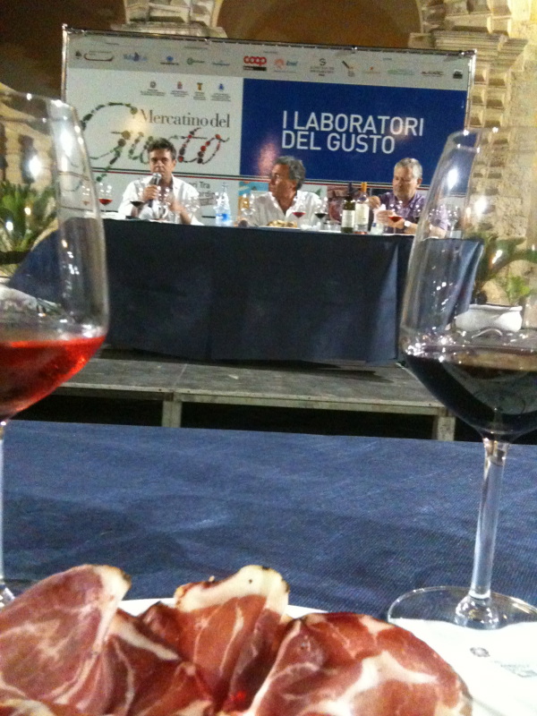 La folla è già quella delle grandi occasioni. Maglie ospita per la dodicesima volta il Mercatino del Gusto, ormai un punto di riferimento per la gente del luogo e per i turisti. Complice il periodo, molti turisti scelgono la città salentina per una vacanza rilassante e per assaggiare prodotti tipici. Ottantanove stand riempiono di colori, odori e sapori il centro di Maglie, con le strade addobbate a tema. Si può infatti percorrere la via dei dolci, la via dell’olio e molte altre. Preso d’assalto, come ogni anno, lo stand dei formaggi e Palazzo De Marco, al cui interno si possono assaggiare le bombette, tra i prodotti più gettonati, la focaccia barese, i pezzetti e pipirussi, il rustico e la pasta di grano Senatore Cappelli. E a proposito di pasta, molto richiesta anche quella “Molino del Salento” di Francesco Tarantino. “Siamo presenti qui da dodici anni – dice l’interessato – quest’anno abbiamo portato la pasta d’avena, fatta tutta con cereali locali, e la Senatore Cappelli, con il formato a maccheroncini tipico di queste zone”. Tra un piatto di orecchiette con pomodori e ricotta magliese e una Puglia Colada a base di pesche, nata dalla mente di Antonio Venneri da Melissano, molte sono state anche le occasioni per imparare nuovi abbinamenti tra i vari alimenti. Come il laboratorio del gusto ieri dedicato ai salumi: “Onda su onda… Fetta su fetta” ha visto come ospite speciale Angelo Costantini, che con Michele Polignieri e Antonello Del Vecchio hanno presentato i cibi e la serata. Sono stati serviti Negramaro, Primitivo e salumi locali, con i tre a spiegare come fare gli abbinamenti. “La genuinità di queste carni – spiega Polignieri – è data dal tipo di muscolo che si va a lavorare. Sono tutti animali cresciuti in uno spazio ampio, liberi di pascolare, nel caso non fosse stato così il sapore ne avrebbe risentito”. Costantini rimarca la scelta: “Slow Food cerca solo capi cresciuti in questo modo, e non in pochi metri. Qual è la differenza? Non sono animali stressati. Pensiamo a un essere umano tenuto in uno stanzino per lungo tempo, cui poi venga chiesto di fare delle azioni complesse. Non renderà al meglio, così come non rende la carne di questi animali. Il concetto del presidio Slow Food è quello della salvaguardia dall’estinzione: ci adoperiamo affinché il prodotto continui a essere fatto nello stesso modo, salvaguardando la biodiversità”.