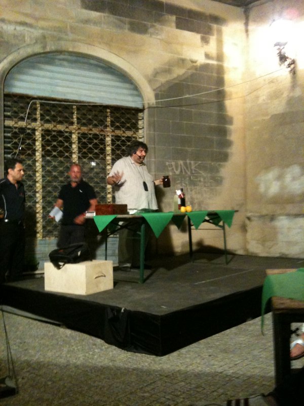 Tra le strade del Mercatino del Gusto, addentando un biscotto di Ceglie Messapica – dolce alla pasta di mandorle molto morbido e friabile – è possibile imbattersi in più di un evento musicale. Sono molti gli spazi adibiti per questo tipo di intrattenimento, d’altronde può essere molto rilassante mangiare con un sottofondo musicale. Una intera sezione, “Musica e non solo” (in piazza Tamborino) è infatti dedicata a questo tipo d’arte, con le varie serate che spaziano tra jazz (ieri si sono esibiti i “Jass and Brass”), swing e musica più indigena. Per la dodicesima edizione, tra le novità anche “Slow Folk”, altro spazio musicale dedicato ad artisti che mettono in musica la tradizione salentina. Ieri lo spettacolo di Rocco Giangreco e Giuseppe Presicce, molto apprezzato dal pubblico. Nei pressi della zona “musicale”, la Via dei Dolci, molto gettonata, specialmente a fine serata per un dessert conclusivo. E non si trovano solo pasticciotti, fruttoni e tutti gli altri prodotti più conosciuti del Salento, come lo spumone: ad esempio l’allevamento apistico del Salento, di Galatone, ha portato a Maglie dell’ottimo miele biologico. Altra novità di quest’anno l’Olivotto, nato dalla mente di Massimo Gaetani, di Martano. Questa linea di prodotti, fatta su una base di olive dolci, ha una particolarità: può essere usata indifferentemente su crostate, pane o anche per condire formaggio, assicurando un apporto calorico molto inferiore ad altri prodotti simili da centro commerciale. Particolare poi il prodotto “Divino Amore” del liquorificio Villantica: si tratta di un liquore dolce con vari gusti che va servito nelle cialde, già in confezione, che ne esaltano il sapore. Ma se oltre a bere si vuole anche conoscere di più sulla preparazione di una bevanda, il laboratorio “Barman per una sera” è quanto mai adatto: Michele Di Carlo ha ieri dato luogo a una piccola dimostrazione sulla Piña Colada e sulla Puglia Colada, variante regionale ideata proprio da Slow Food e rintracciabile per tutti i giorni del Mercatino presso lo stand ortofrutticolo dell’azienda Venneri, fatta con frullato di pesche, latte di mandorla, rum bianco e vincotto. “Il vero cocktail – ha spiegato nel corso della serata – è fatto bene quando l’alcol non si sente, dato che è nato per farlo gustare anche a chi non lo beve perché trova il sapore poco piacevole. Il segreto? Un cocktail va bevuto freddo, altrimenti l’alcol inizia a sentirsi troppo e si perde il sapore degli altri ingredienti”. Nel corso della serata, proposti anche alcuni abbinamenti con i sigari grazie alla collaborazione del Club Amici del Toscano.