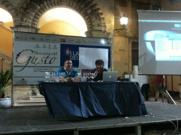 Il tour odierno al Mercatino del Gusto parte dal negozio di abbigliamento “Giorgio Santese” di via Trento e Trieste. In una delle manifestazioni collaterali al Mercatino stesso, è il luogo in cui il quotato pittore Giulio Acquaviva sta esponendo alcune sue tele, che riescono a diventare tutt’uno con gli abiti, le cinture e le scarpe. “Succede – spiega l’artista – perché il concetto di arte è vasto. Arte può essere realizzare un abito, vestirsi, ma anche cucinare o preparare cocktail. Nulla è arte perché tutto è arte, tutto ciò che ci circonda. In particolare, questi ambienti esaltano le mie opere e viceversa, in un rapporto simbiotico che risulta molto gradevole”. Il proprietario del negozio, Salvatore Santese, ripercorre invece gli esordi del Mercatino, nato da un’idea condivisa con Maurizio Maglio e Tonino Lio, ma quest’anno ha deciso di prendersi una pausa e non far parte dell’organizzazione. “Ciò che ci ha sempre spinti è l’amore per Maglie – dice – L’evento è in crescita, anno dopo anno, e già stiamo studiando le mosse per il prossimo anno, tra cui una convenzione con le ferrovie Sud-Est durante il periodo del Mercatino”. All’interno del negozio è stato anche servito del vino rosato con fragole, un cocktail preparato da Michele Di Carlo, già protagonista dello spazio “Barman per una sera”. Ma i prodotti più particolari sono sicuramente localizzabili tra la “Via della Gastronomia” e “I presidi e le comunità del cibo”. Come lo stand dei formaggi, sempre affollato fino all’inverosimile. Buona risposta di pubblico riceve anche la pasta Cavalieri, che con il Molino del Salento è stata definita dal Vanity Fair americano tra le dieci migliori paste al mondo. Il pane di Altamura, poi, trova tre abbinamenti ideali con i pomodori fiaschetto di Torre Guaceto, la cipolla rossa di Acquaviva (ottimi i piatti preparati dai produttori per degustarla al meglio) e la musciscka, carne di capra garganica fatta essiccare in modo naturale. Infine, piatto forte della serata è stato il Laboratorio della birra artigianale. Nonostante la defezione di Roy Paci, annunciato tra gli ospiti, il produttore della birra “Baladin” Teo Musso ha esposto al meglio la sua produzione artigianale. Serata piacevole con le birre, dalla Isaac alla Xyauyu, presentate non solo da Musso, ma anche da divertenti caroselli che ne spiegavano gli abbinamenti consigliati. Notevoli il video e il gusto della birra Nora, da consumare con gli affettati. A chiudere la serie “Carosello di Baladin” e la serata proprio Roy Paci, guest star dell’ultimo cortometraggio.
