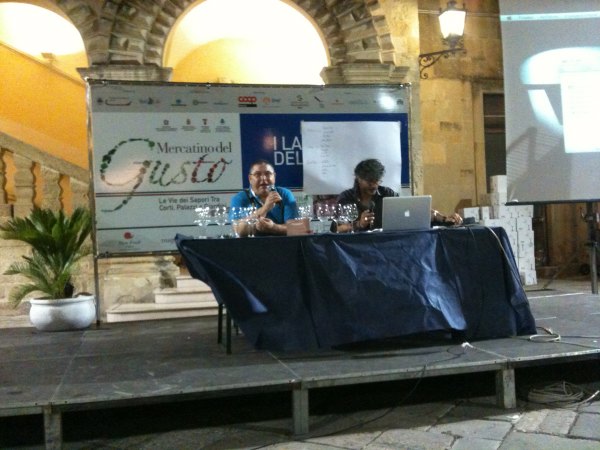 Il tour odierno al Mercatino del Gusto parte dal negozio di abbigliamento “Giorgio Santese” di via Trento e Trieste. In una delle manifestazioni collaterali al Mercatino stesso, è il luogo in cui il quotato pittore Giulio Acquaviva sta esponendo alcune sue tele, che riescono a diventare tutt’uno con gli abiti, le cinture e le scarpe. “Succede – spiega l’artista – perché il concetto di arte è vasto. Arte può essere realizzare un abito, vestirsi, ma anche cucinare o preparare cocktail. Nulla è arte perché tutto è arte, tutto ciò che ci circonda. In particolare, questi ambienti esaltano le mie opere e viceversa, in un rapporto simbiotico che risulta molto gradevole”. Il proprietario del negozio, Salvatore Santese, ripercorre invece gli esordi del Mercatino, nato da un’idea condivisa con Maurizio Maglio e Tonino Lio, ma quest’anno ha deciso di prendersi una pausa e non far parte dell’organizzazione. “Ciò che ci ha sempre spinti è l’amore per Maglie – dice – L’evento è in crescita, anno dopo anno, e già stiamo studiando le mosse per il prossimo anno, tra cui una convenzione con le ferrovie Sud-Est durante il periodo del Mercatino”. All’interno del negozio è stato anche servito del vino rosato con fragole, un cocktail preparato da Michele Di Carlo, già protagonista dello spazio “Barman per una sera”. Ma i prodotti più particolari sono sicuramente localizzabili tra la “Via della Gastronomia” e “I presidi e le comunità del cibo”. Come lo stand dei formaggi, sempre affollato fino all’inverosimile. Buona risposta di pubblico riceve anche la pasta Cavalieri, che con il Molino del Salento è stata definita dal Vanity Fair americano tra le dieci migliori paste al mondo. Il pane di Altamura, poi, trova tre abbinamenti ideali con i pomodori fiaschetto di Torre Guaceto, la cipolla rossa di Acquaviva (ottimi i piatti preparati dai produttori per degustarla al meglio) e la musciscka, carne di capra garganica fatta essiccare in modo naturale. Infine, piatto forte della serata è stato il Laboratorio della birra artigianale. Nonostante la defezione di Roy Paci, annunciato tra gli ospiti, il produttore della birra “Baladin” Teo Musso ha esposto al meglio la sua produzione artigianale. Serata piacevole con le birre, dalla Isaac alla Xyauyu, presentate non solo da Musso, ma anche da divertenti caroselli che ne spiegavano gli abbinamenti consigliati. Notevoli il video e il gusto della birra Nora, da consumare con gli affettati. A chiudere la serie “Carosello di Baladin” e la serata proprio Roy Paci, guest star dell’ultimo cortometraggio.