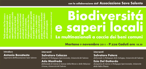 Mercoledì 9 novembre a Martano si terrà un convegno di Save Salento per discutere su come costruire percorsi di crescita alternativi a partire dai beni comuni e dalla necessità di proteggerli dai processi di privatizzazione e dall’attacco degli interessi economico-finanziari. “L’accesso da parte di tutti i cittadini a diritti fondamentali come acqua, suolo, cibo, salute, biodiversità e saperi tradizionali – sostiene il segretario di Save Salento Antonio Bonatesta – è a rischio non soltanto nel Sud del mondo, ma anche nei luoghi della nostra quotidianità. La loro trasformazione da beni comuni in beni privatizzati è una tendenza sempre più incalzante”. Le multinazionali a caccia dei beni comuni, organizzato dall’associazione Save Salento per il prossimo 9 novembre 2011 a Martano, nella sala convegni di Piazza Caduti alle 18,30, attraverso interventi, proiezioni, dibattiti, si pone il duplice obiettivo di evidenziare, a partire dall’esperienza salentina, i processi di depauperamento e di privatizzazione che hanno colpito in questi anni i beni. All’introduzione di Antonio Bonatesta, segretario di Save Salento, faranno seguito gli interventi di Salvatore Colazzo, docente di Pedagogia Sperimentale presso l’Università del Salento, di Ada Manfreda, Salvatore Patera ed Ezio Del Gottardo, tutti ricercatori presso l’ateneo salentino. L’iniziativa del convegno nasce dall’attenzione che l’associazione Save Salento ha riservato in questi ultimi tempi alla campagna di sensibilizzazione promossa da Sblocchiamoli. “La campagna ha stimolato il nostro interesse – dichiara il segretario Antonio Bonatesta – dal momento che essa sembra richiamare problematiche che, sul versante energetico, ci vede impegnati da tempo. L’esperienza delle energie rinnovabili ha mostrato in questi anni come uno strumento potenzialmente positivo, sotto la pressione di interessi economico-finanziari votati alla speculazione, si sia potuto risolvere in un’inaudita aggressione a danno dei beni comuni, nelle forme di sottrazione di terreno fertile all’agricoltura, di compromissione dei valori storici, ambientali e paesaggistici, di consumo di suolo. In questo senso, soprattutto il suolo, quale matrice fondamentale della produzione materiale e dei valori collettivi, è stato sottoposto anche nel Salento a un pervasivo processo di privatizzazione e di depauperamento da parte di un numero ristretto di lobby e di gruppi bancari con il loro seguito di mediatori locali e società aleatorie”. La soluzione non può che prendere necessariamente le mosse dalla dimensione locale e comunitaria, partendo dal recupero di ciò che stiamo irrimediabilmente perdendo. Agricoltura a chilometro zero e impianti energetici pubblici da fonti rinnovabili promossi da consorzi comunali sono le prime leve di questo cambiamento.