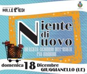 Nuova iniziativa dell’associazione giovanile Millepiedi di Giuggianello. Prevista per domenica 18 dicembre dalle 18 presso piazza Degli Eroi, l’iniziativa “Niente di Nuovo”. L’associazione Culturale Mille Piedi con il patrocinio del Comune di Giuggianello e la collaborazione della parrocchia Sant’ Antonio Abate organizza un mercatino dell’usato che avrà per protagonisti i bambini delle scuole primaria e dell’infanzia di Giuggianello e Sanarica, un modo diverso e concreto per sensibilizzare bambini e adulti alle tematiche del riciclo, riuso e della sostenibilità, la lotta allo spreco.