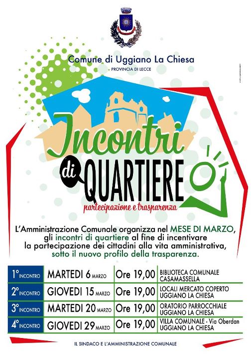 Riqualificazione della villa comunale a Uggiano la Chiesa e “Incontri di quartiere”, per una maggiore trasparenza amministrativa, per la precisione.